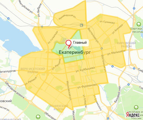 Внутри желтой зоны доставка стоит 250 рублей.